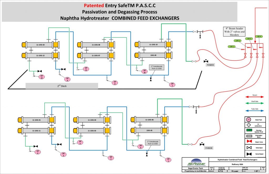 At Sage Chemical Cleaning Solutions and Decontamination, we are always looking for solutions to decrease our client’s downtime, increase equipment turnover, and not jeopardize our commitment to protect the environment and personnel safety. Many years of research and development have gone into our services. One example of our research and development is the degassing process and use of Entry Safe ™ P.A.S.C.C. (Polythionic Acid Stress Corrosion Cracking) neutralizer.
